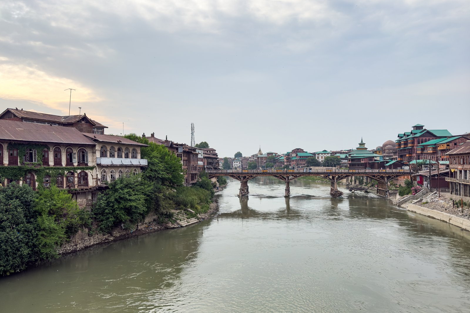 Zaina Kadal bridge spans the Jhelum River and remains a vital link in the heart of Old Srinagar. It stands as one of the city’s seven historic bridges and exemplifies medieval Kashmiri architecture.